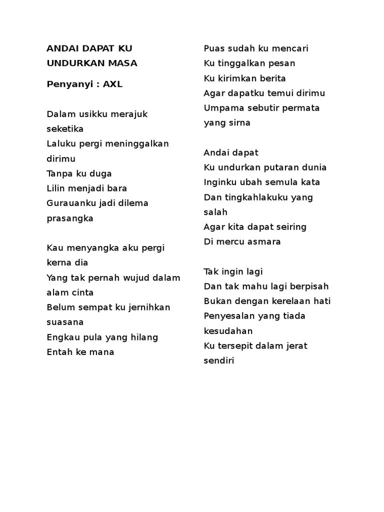 Recommended by the wall street journal. Lagu berjudul andai dapat ku undurkan masa merupakan lagu dari grub band rock axl's. Dm am laluku pergi meninggalkan dirimu ;
